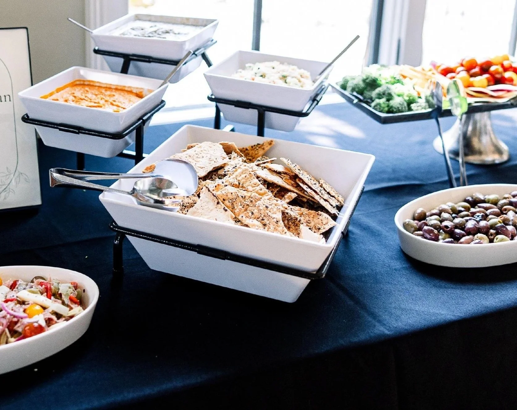 tomato bruschetta salad, baba ghanoush, antipasto salad, tabbouleh, roasted red pepper hummus, marinated Spanish olives, “everything” crackers